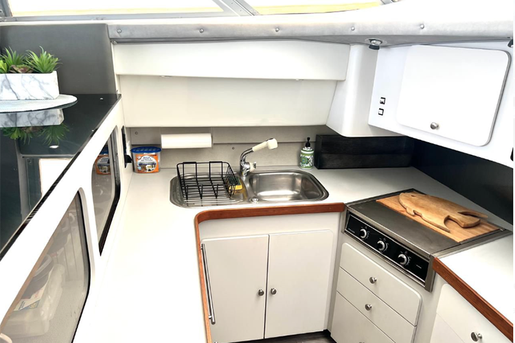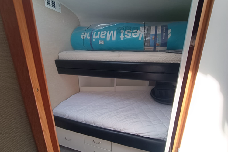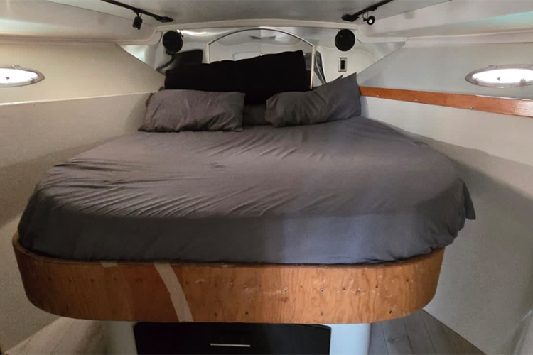 El barco cuenta con 2 camarotes, 2 baños, sala, sonido Bluetooth. No tiene aire acondicionado.