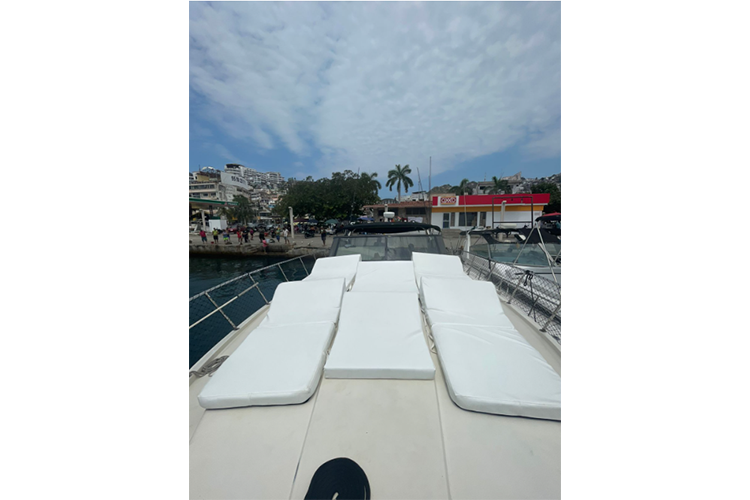 La embarcación cuenta con 2 camarotes, baño con regadera, sala, batanga, 2 snorkel, audio Bluetooth y AIRE ACONDICIONADO.