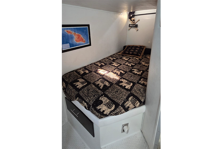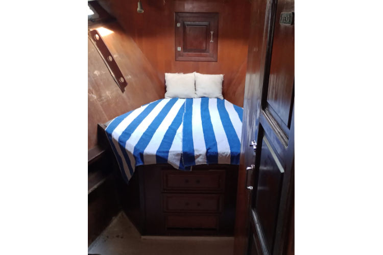 La embarcación está equipada con 2 camarotes, baño, sala, batanga, 2 snorkel y 1 kayak y aire acondicionado.