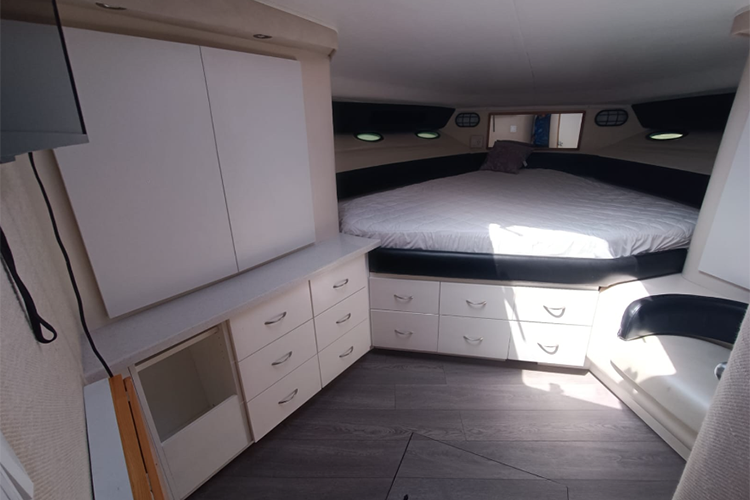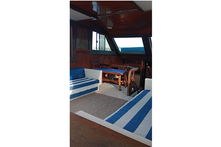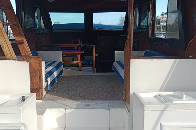 Cuenta con flybridge, 2 camarotes, sala, baño y cocina. SIN Aire Acondicionado.