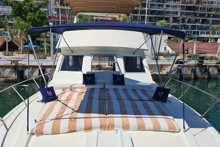 Incluye: Capitán y marinero. 12 aguas, 12 beer. El barco es espacioso, cuenta con flybridge, camarote, baño y cocina. SIN Aire Acondicionado.