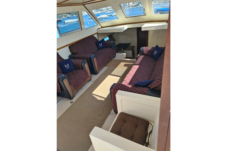 Cuenta con mobiliario lounge, cocina, bar, equipo de sonido, iluminación interior y exterior, 2 baños (damas y caballeros), hielera, regadera de agua dulce, escalera para bajar y subir al mar, 5 equipos de snorkel, 2 kayak, planta de luz, tripulacion abordo al servicio de los pasajeros.