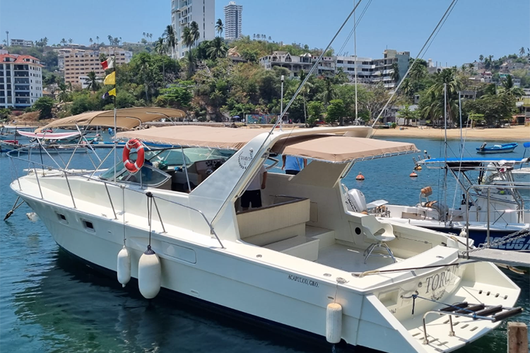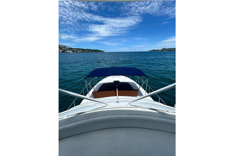 Incluye: Capitán, marinero. No incluye bebidas. La embarcación tiene 2 camarotes, 2 baños, asoleadero en proa, sala en segundo piso, pantalla plana, sonido bluetooth, batanga con escalera, tapete de playa, hielera grande, 2 equipos de snorkel.