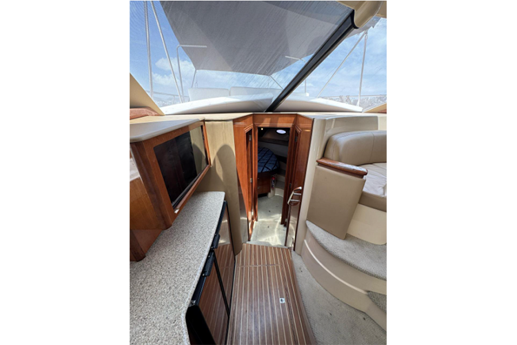 La embarcación cuenta con flybridge, 2 camarotes, sala, baño, comedor, cocina y AIRE ACONDICIONADO.