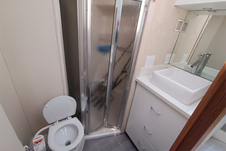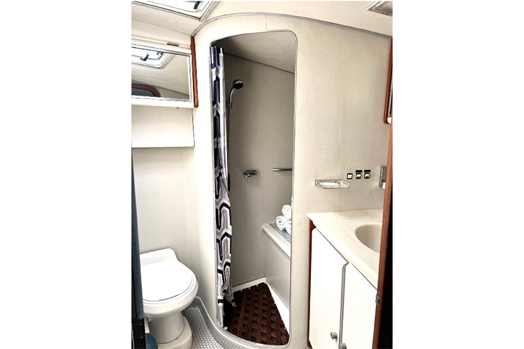 La embarcación está equipada con 2 baños, sonido Bluetooth, sala interior y exterior.